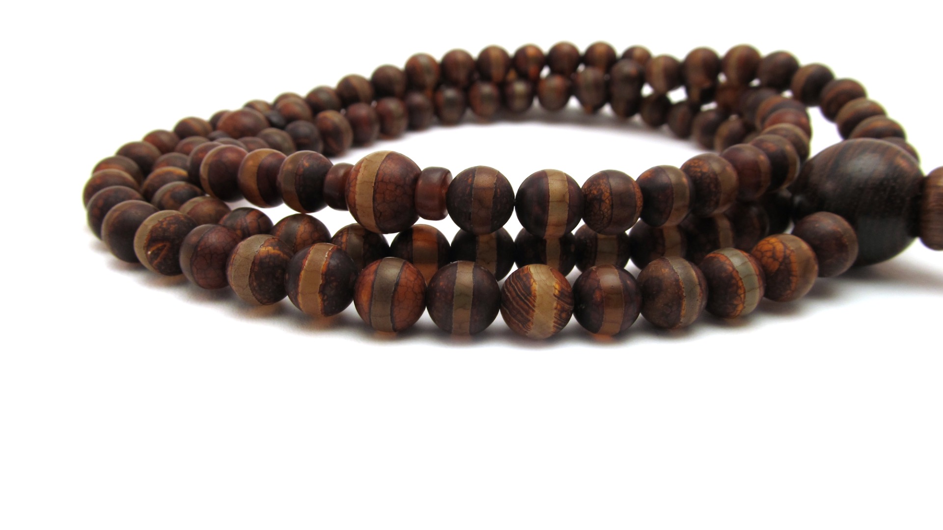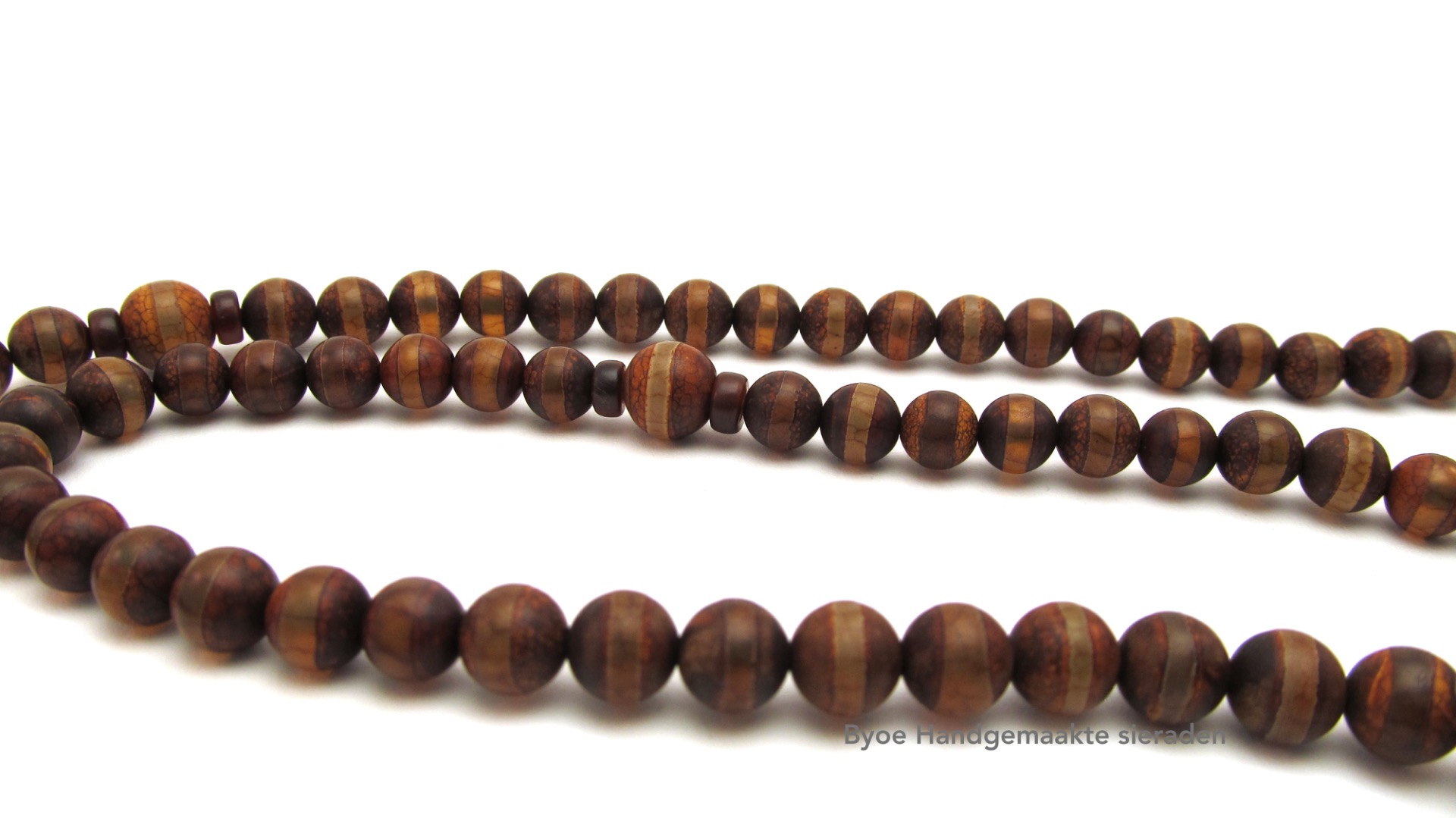 Handgemaakte Mala ketting op bruin elastiek van Tibetaanse Dzi Edelsteen.