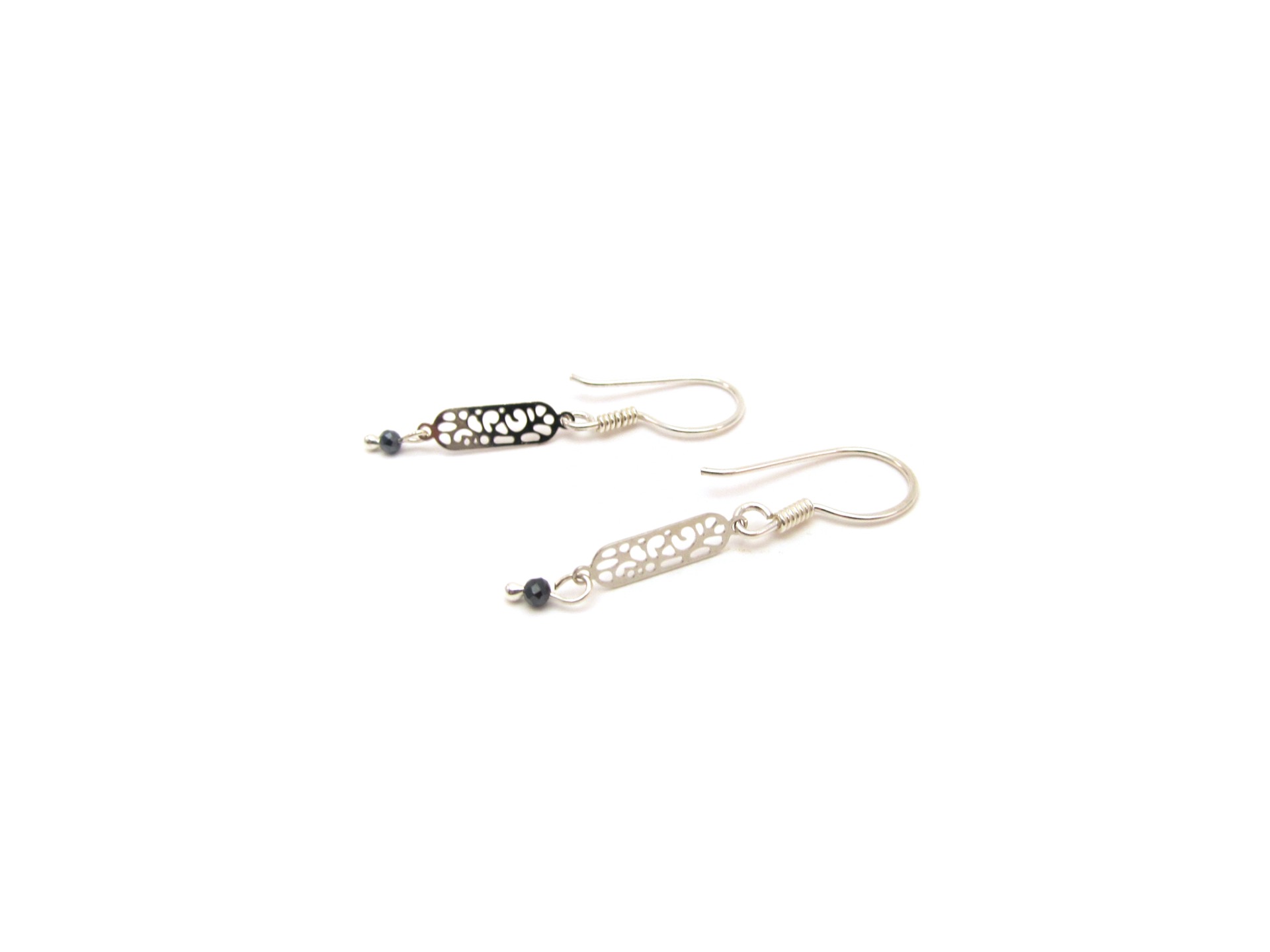 Mooie fijne oorbellen met filligraan hangertje met daaronder een klein zwart glinster kraaltje.