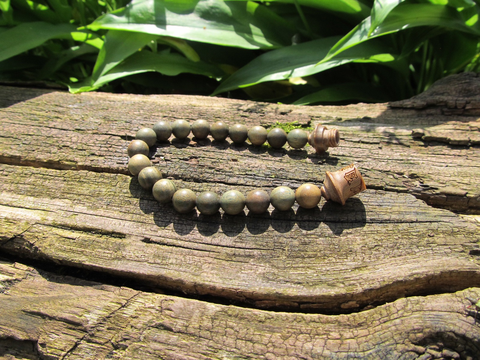 Mala armband van groene Sandelwood kralen met een mooie houten handgemaakte schroefsluiting.