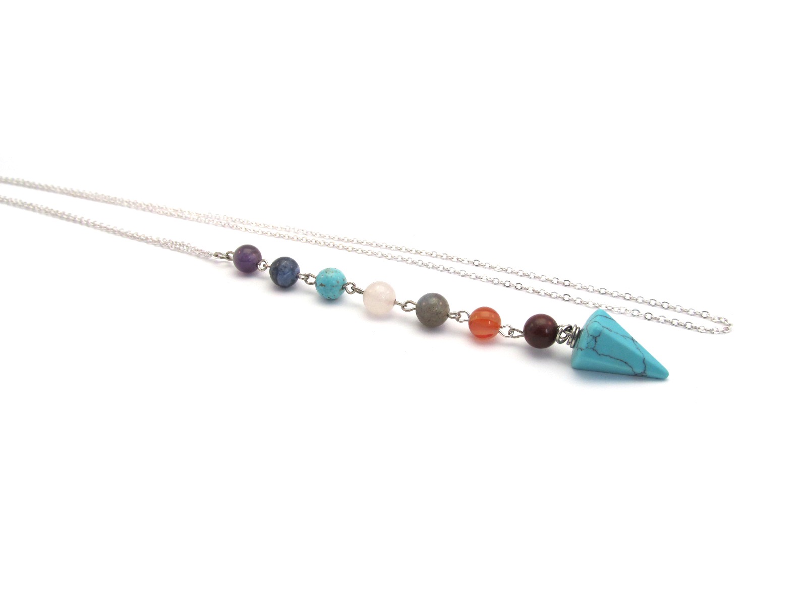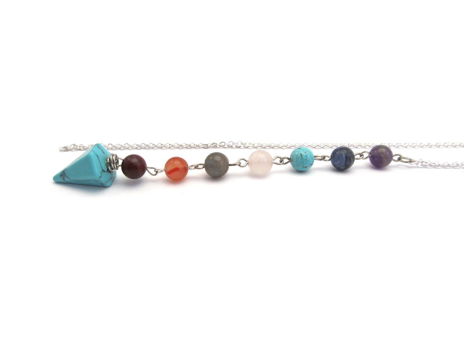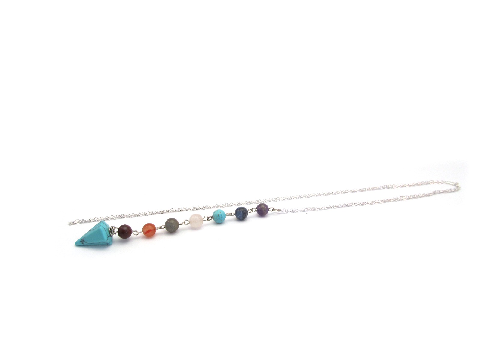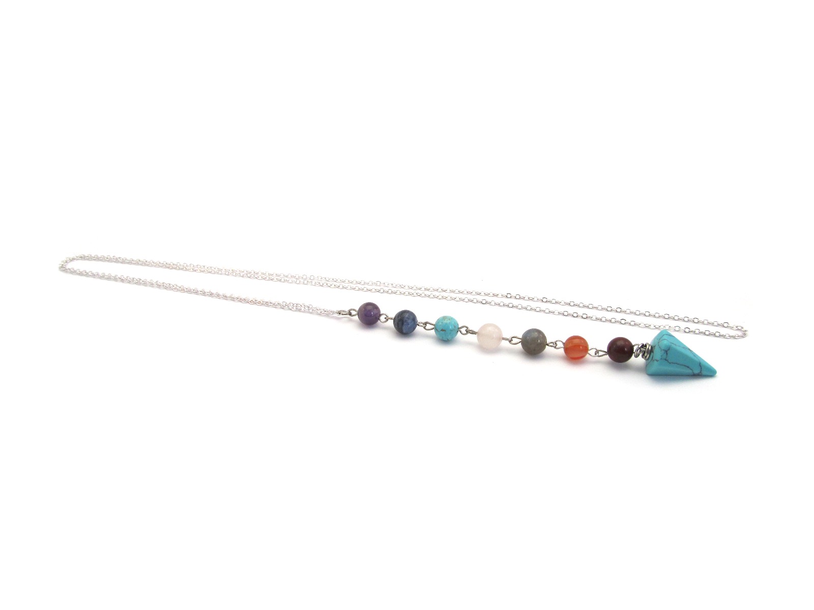 Handgemaakte zilverkleurige ketting met een Chakra hanger.