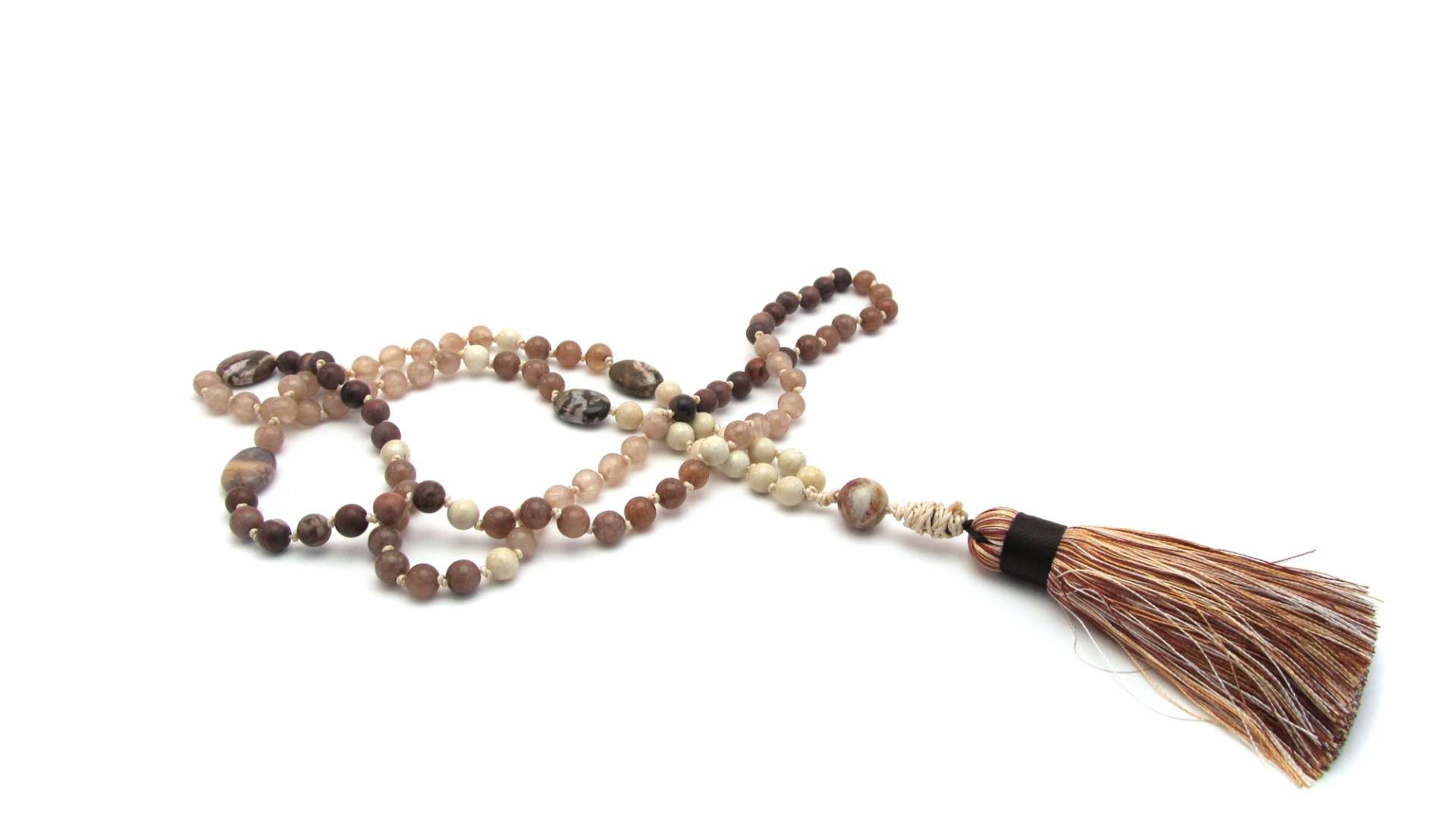 Je ontvangt de mala ketting van de foto, elke ketting is uniek en handgemaakt.