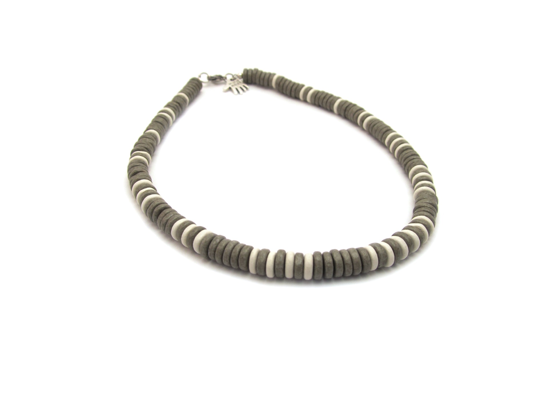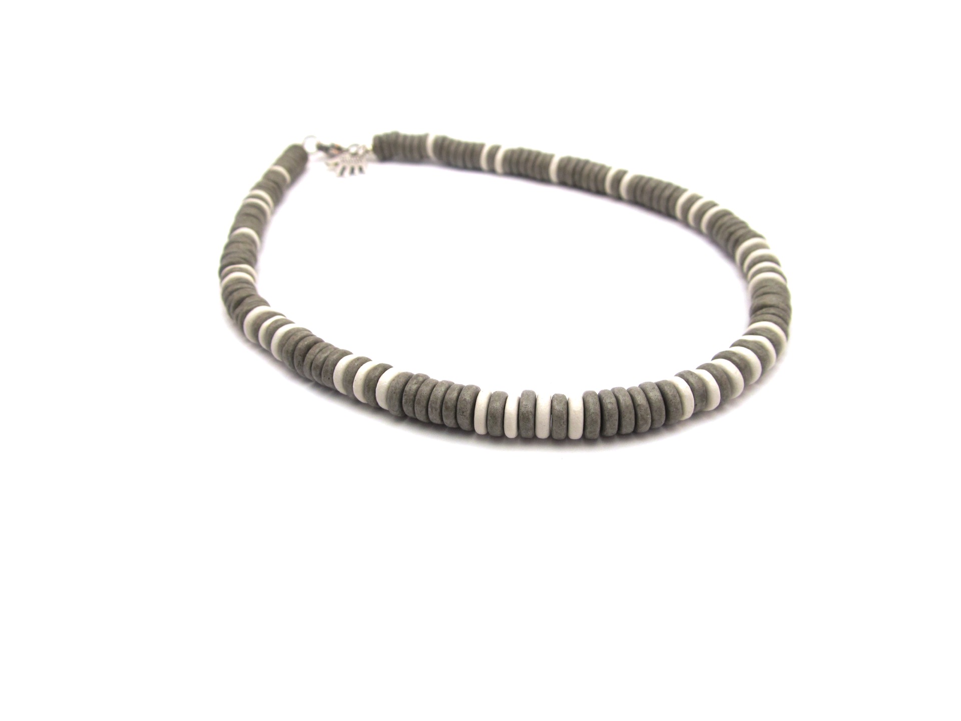 Korte ketting met discus vormige keramiek kralen met een RVS karabijnsluiting.