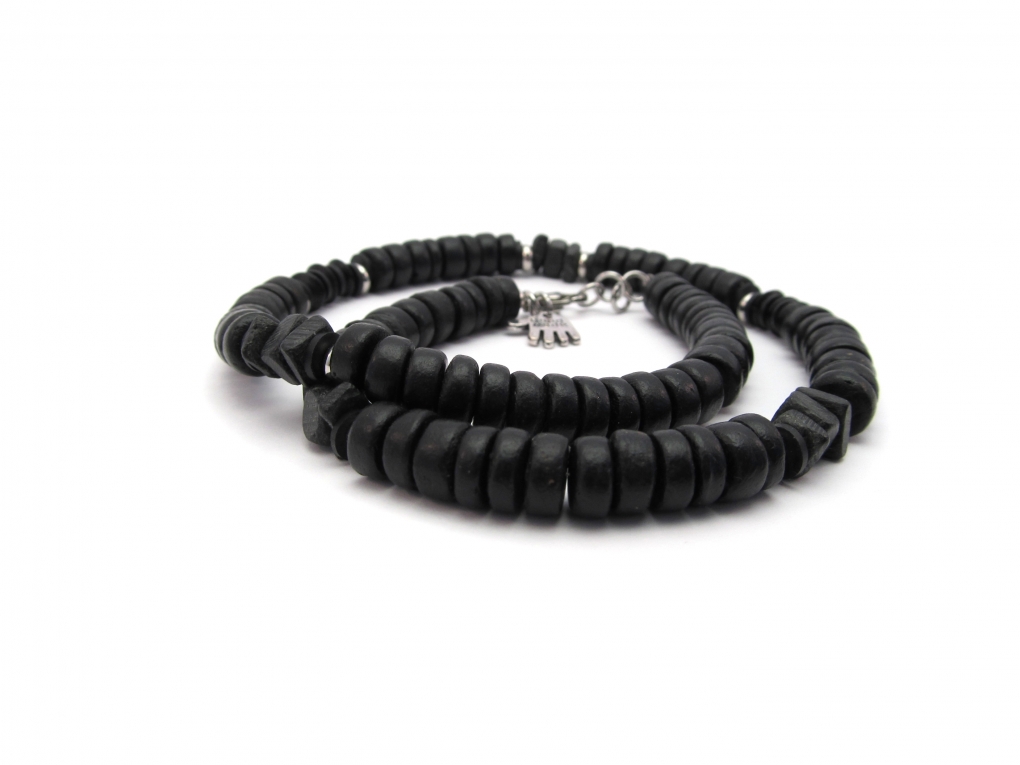 Handgemaakte stoere herenketting van zwarte discusvormige cocos houten kralen.
