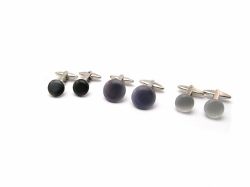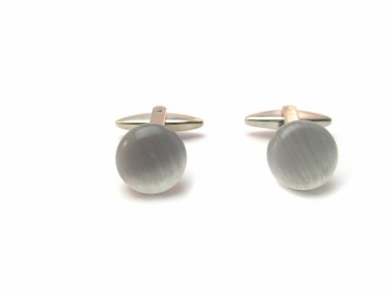 1 paar Zilverkleurige manchetknopen met een witte cateye.